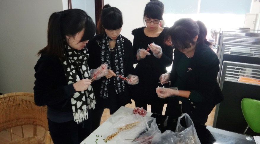刚一落座,大家都迫不及待的拿出了羊肉串、鸡翅、鸡胗、牛排、花菜等各种各样的菜肴,几个同事负责烤制,不一会儿大家已经被袅袅肉香所谗倒,深吸一口气,那种味道,那种飘渺已经让人有些酣畅了。