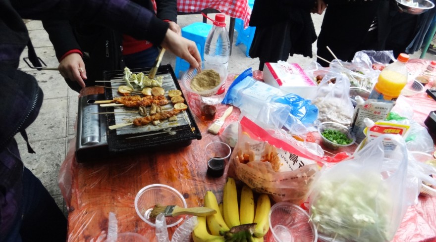 虽然都是几个“大厨掌勺”,但那袅袅烟腾,同样让人感受其中,而身临其境的更是那混合的烟味儿。这是一种原始风格的美味,让人在回归自然的过程中,充分领略古老饮食文化的无穷乐趣。当夜幕慢慢降临,我们也已经酒足饭饱。最后总结一句:吃烧烤,感觉真的不错。