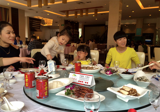 到山下时,大家早已饥肠辘辘,就直奔酒店吃饭去了。饭桌上大家有说有笑,欢声笑语一片。坐拥在一块好山好水好风光的土地上吃饭,丝毫不觉疲累,席间兴致高昂,饭饱后更是精力倍增。