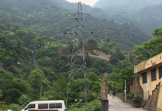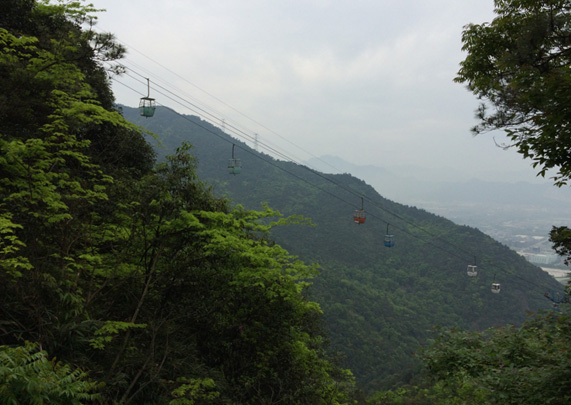 我们一路往上走,一路欣赏周围的风景来分散疲惫感,只见围绕在身边的老树长出嫩芽新枝,草木葱郁,一幅生机勃勃之象,再从半山腰望出,来自白云山的特色缆车在半空中升降有序,成为这山林中别样的一出美景。