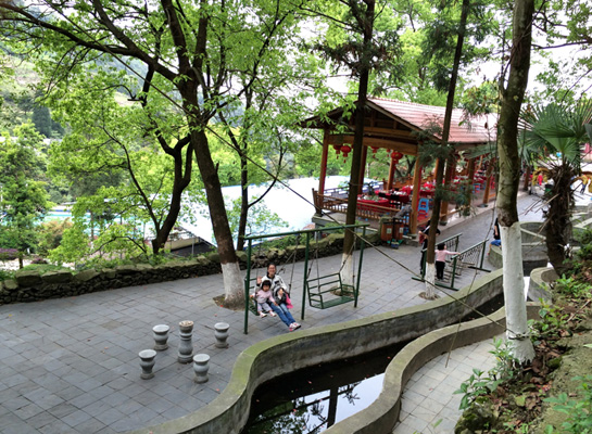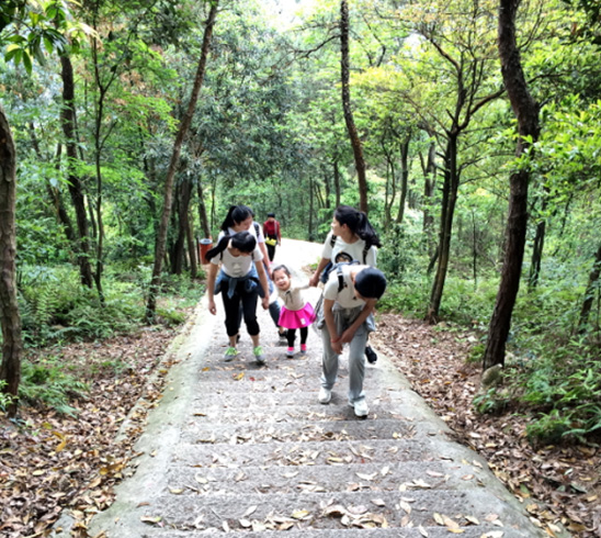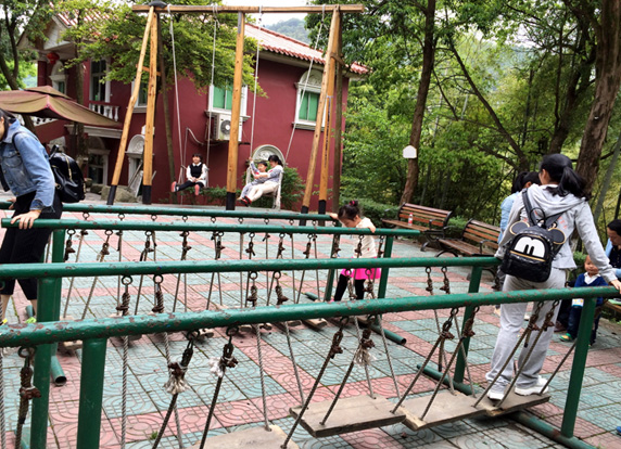 经过2小时左右的坚持不懈,一行人总算到达了白云山观光园的门口售票处,进入观光园,还有一条蜿蜒直下的走道,指引我们走去休闲区。休闲区设有秋千,小伙伴们一看见秋千就兴奋不已,纷纷上去玩耍,仿佛又回到了小时候,那单纯童真的样子。不远处有游泳池,夏天去白云山还能下去畅游一番,再上来吃山间美食,那感觉一定美哉!