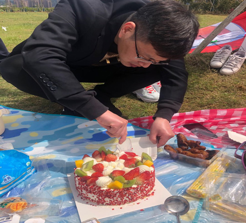愚人节,一个特别的节日。我们准时来到三垟湿地。一进三垟湿地,映入我们眼帘的是一座石桥,最近连续几场的春雨也让石桥边的小草得到了吮吸而变得勃勃生机。往前走几步,我们便过了九曲桥来到了大草坪上,大家放下手中的行李,开始了我们期待许久的野餐。铺上爬爬垫,摆上各自精心制作的美食和水果,端上满杯的网红奶茶,丰盛而又浓香,让人看着垂涎三尺。 整理完毕后,第一个最重要的环节便是庆祝我们最帅气的叶老师生日快乐。“1,2,3,祝叶老师,生日快乐!”在大家的欢呼声下,叶老师切下了生日蛋糕。祝福过后,我们便开始了今天的闲暇时光。
