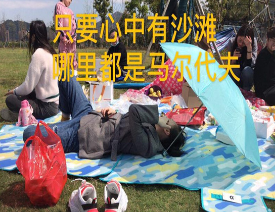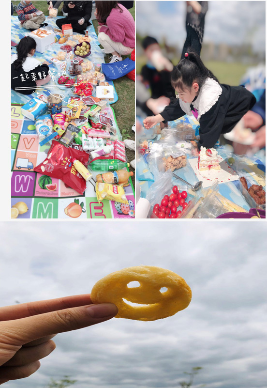 薯片、寿司、鸡翅.....吃的我们不亦乐乎,整个草坪上都充满着“我要吃鸡翅,我要吃水果”的欢叫声,仿佛来到了一条美食街。饱餐一顿之后,大家都拍拍自己的小肚腩,懒洋洋的躺在草坪上,静静地沐浴着午后温暖的阳光。正如一句话“只要心中有沙滩,哪里都是马尔代夫”,而此时,面对着让人如此放松的环境,我们的内心写照是心有阳光,看哪都灿烂。